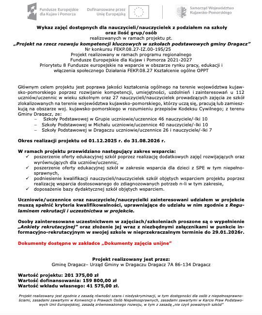 „Projekt na rzecz rozwoju kompetencji kluczowych w szkołach podstawowych gminy Dragacz”