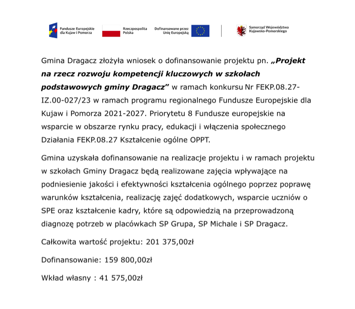 Projekt na rzecz rozwoju kompetencji kluczowych w szkołach podstawowych gminy Dragacz